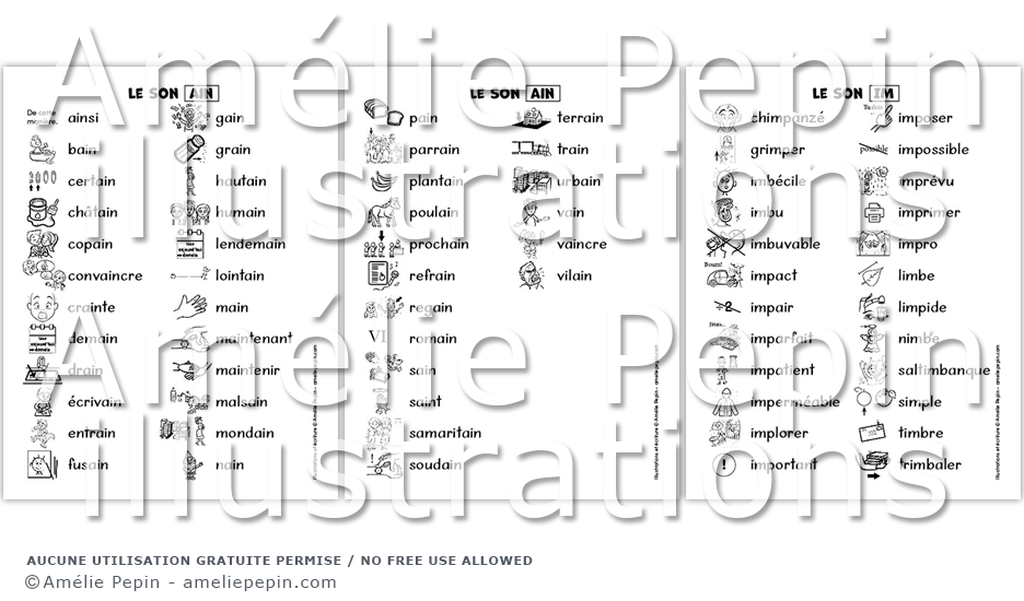 Les sons IM et AIN- Liste de 66 mots illustrés