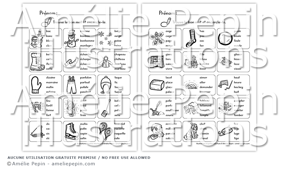 L'élève encercle le mot qui correspond à chaque image. Plusieurs mots se ressemblent, il devra lire les choix de réponse attentivement!