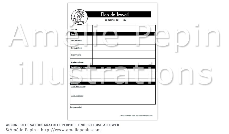*Afin d'ouvrir le document, vous devez avoir le logiciel Microsoft Word. Vous pouvez modifier le tableau et écrire dans les champs de texte. À noter que le titre "Plan de travail" et l'illustration forment une image et qu'ils ne sont pas modifiables.