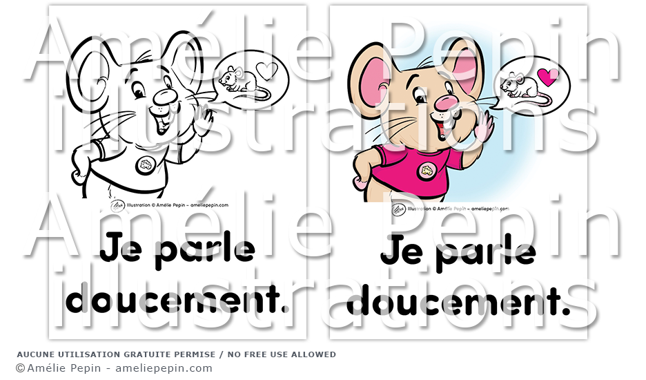 Règle de classe illustrée avec une souris: "Je parle doucement."