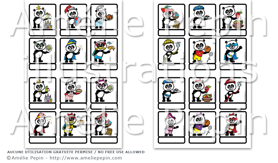 Ce fichier contient 12 pandas garçons et 12 pandas filles pour identifier les crochets de vos élèves (ou autre). Un espace est prévu sous l'image pour inscrire le prénom des enfants. Chaque étiquette mesure environ 3 po. X 3 1/2 po. Le document PowerPoint vous permet d'inscrire les noms des élèves à l'ordinateur.