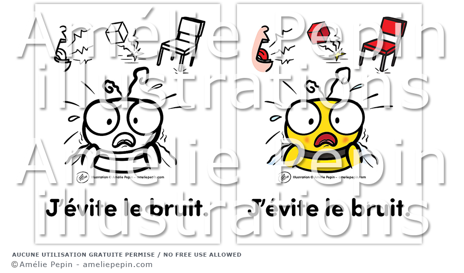 Règle de classe illustrée avec une abeille: "J'évite le bruit."