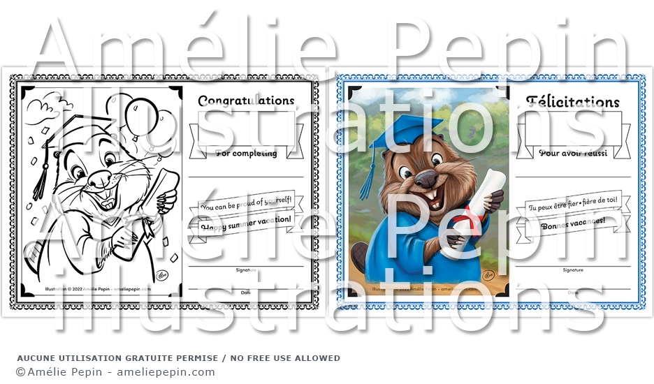 Récompensez la réussite d'une année scolaire complétée avec ce joyeux diplôme de castor! Les informations à compléter doivent être écrites à la main.