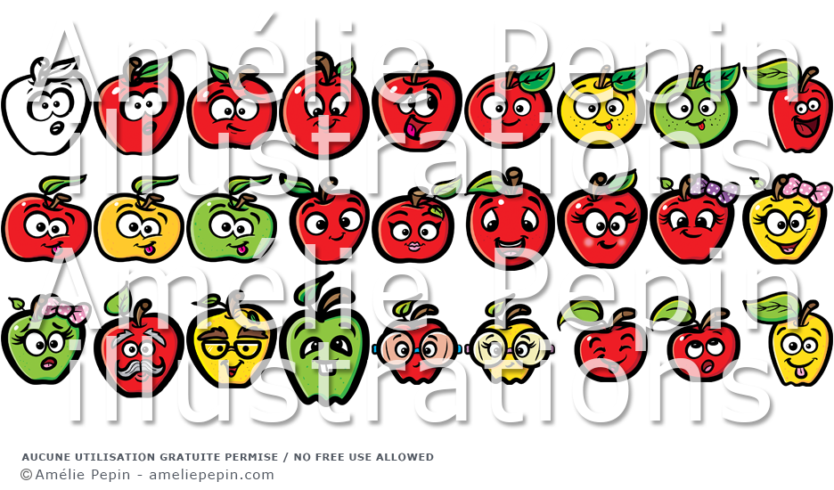 Ce dossier contient 21 modèles différents de pommes avec certains choix de couleurs pour décorer vos documents ou votre pièce.