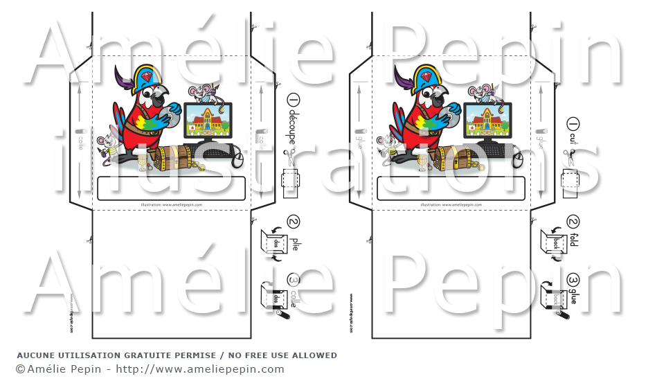 Les enfants peuvent découper et monter eux-mêmes leur pochette en suivant les 3 étapes illustrées.