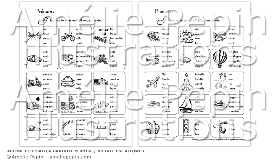 L'élève encercle le mot qui correspond à chaque image. Plusieurs mots se ressemblent, il devra lire les choix de réponse attentivement!
