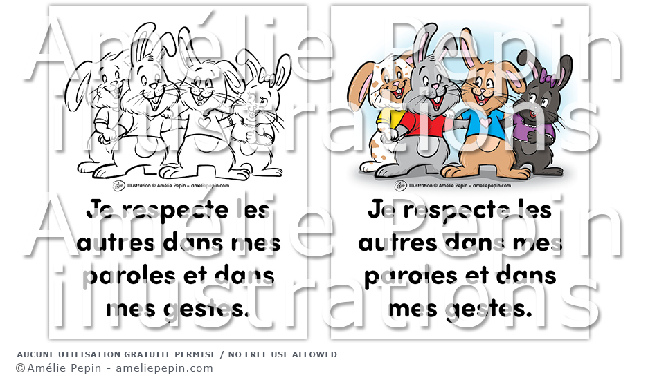 Règle de classe illustrée avec des lapins: "Je respecte les autres dans mes paroles et dans mes gestes."