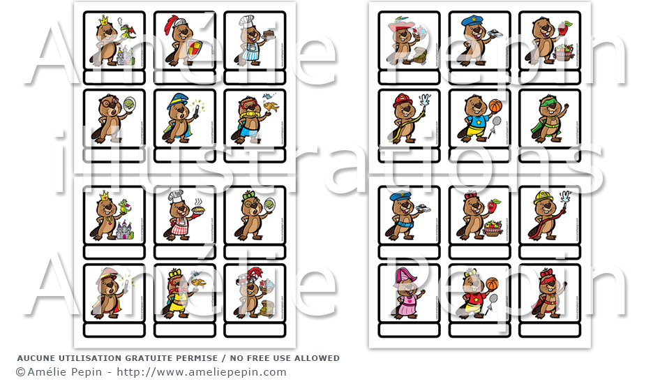 Ce fichier contient 12 castors garçons et 12 castors filles pour identifier les crochets de vos élèves (ou autre). Un espace est prévu sous l'image pour inscrire le prénom des enfants. Chaque étiquette mesure environ 3 po. X 3 1/2 po. Le document PowerPoint vous permet d'inscrire les noms des élèves à l'ordinateur.