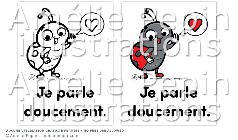 Règle de classe illustrée avec une coccinelle: "Je parle doucement."