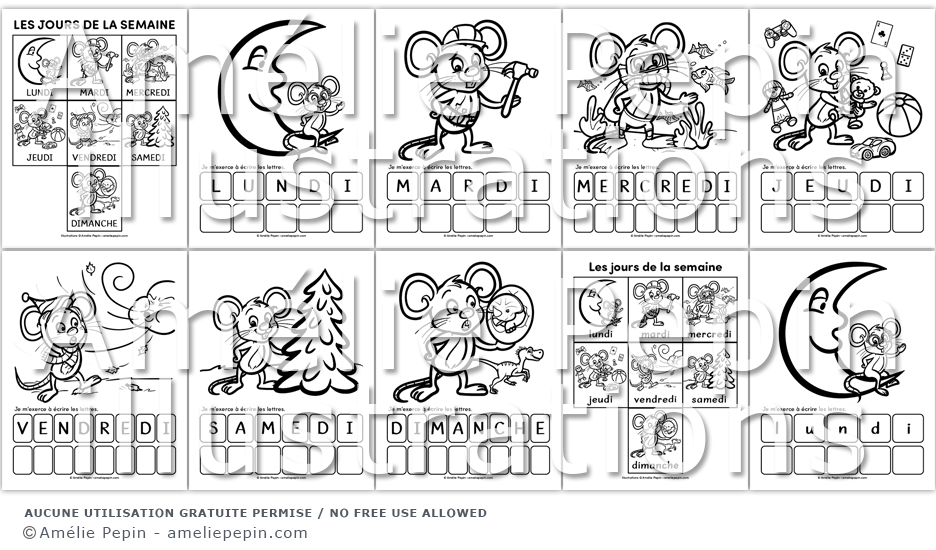 Les jours de la semaine à colorier - Souris