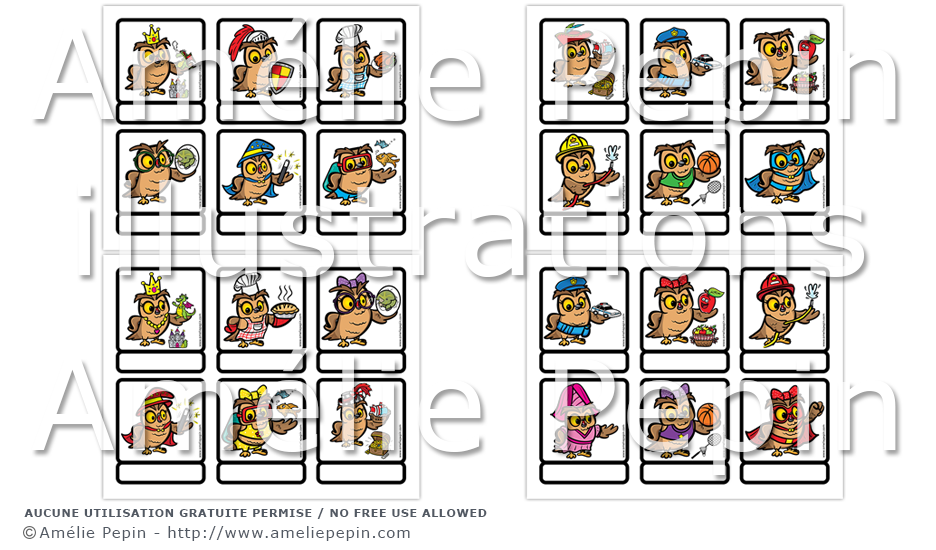 - 6 hiboux par page, 4 pages