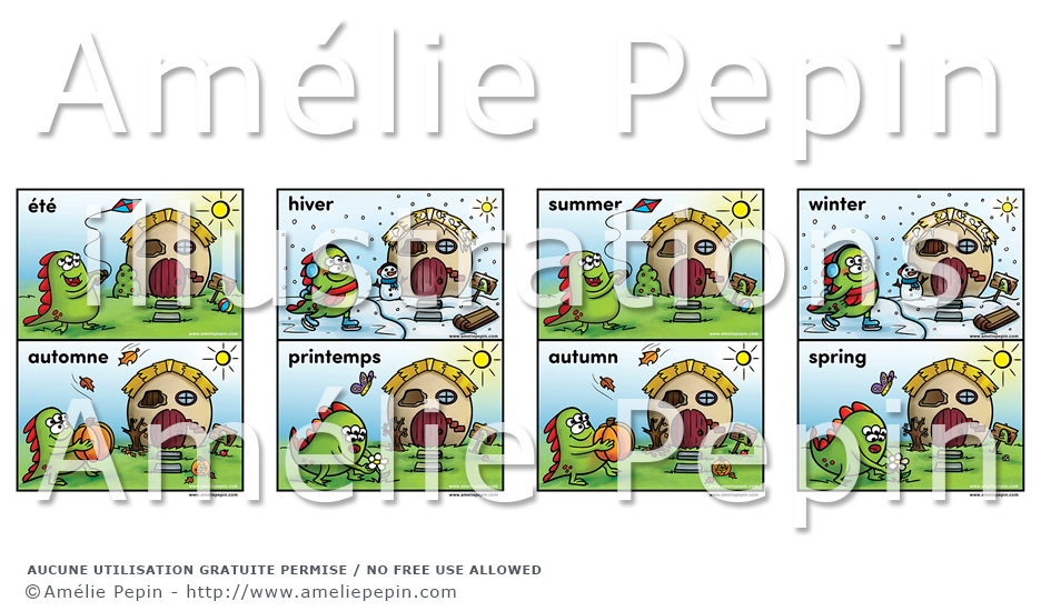 Tags: 1re année, Anglais, Français, Préscolaire et maternelle, Personnages, Monstre, Thèmes, Hiver, Été, Printemps, Automne