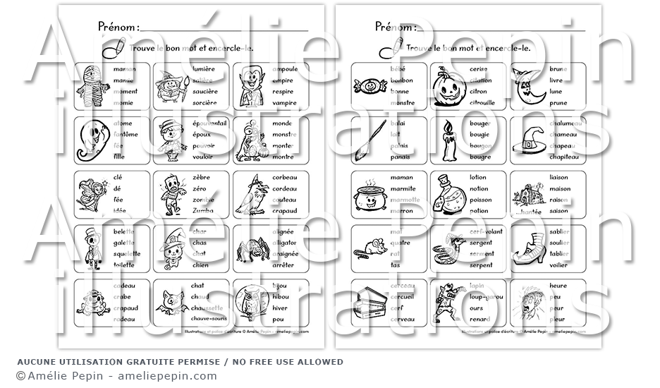 L'élève encercle le mot qui correspond à chaque image. Plusieurs mots se ressemblent, il devra lire les choix de réponse attentivement!