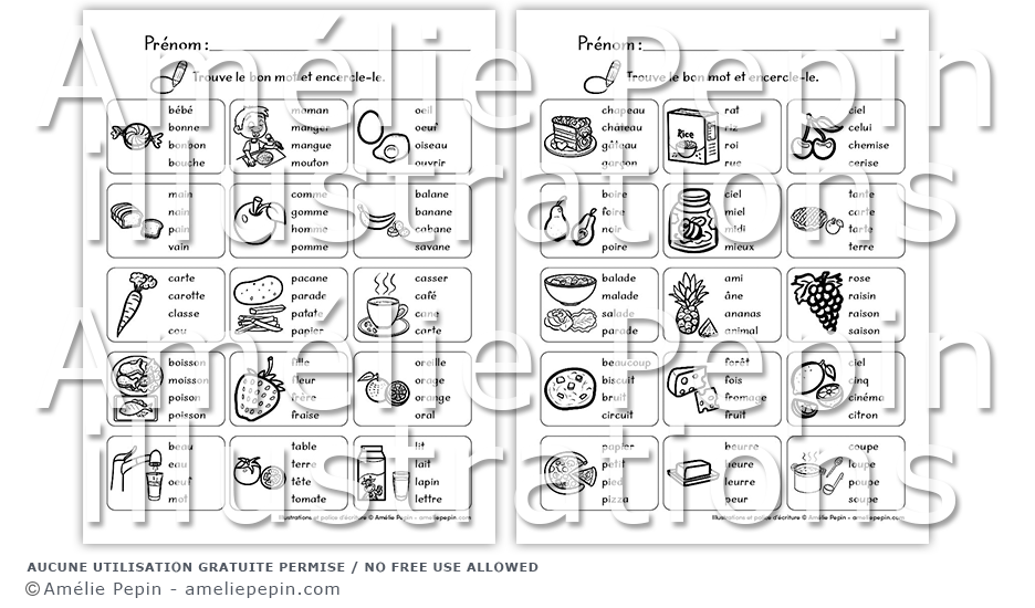 L'élève encercle le mot qui correspond à chaque image. Plusieurs mots se ressemblent, il devra lire les choix de réponse attentivement!