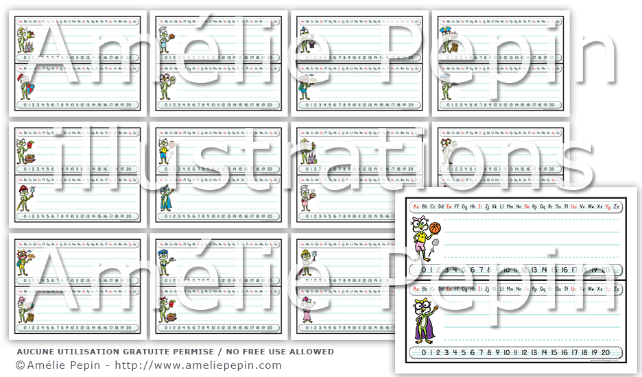 Chaque étiquette contient les lettres de l'alphabet avec les voyelles écrites en rouge, un trottoir pour écrire le prénom de l'enfant ainsi que les nombres de 0 à 20. La version PowerPoint vous permet d'écrire le nom de l'enfant à l'ordinateur (il n'y a pas de trottoir dans cette version). Assurez-vous d'avoir le logiciel Microsoft PowerPoint installé sur votre ordinateur pour ouvrir cette version.