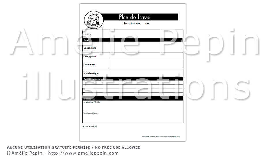 *Afin d'ouvrir le document, vous devez avoir le logiciel Microsoft Word. Vous pouvez modifier le tableau et écrire dans les champs de texte. À noter que le titre "Plan de travail" et l'illustration forment une image et qu'ils ne sont pas modifiables.