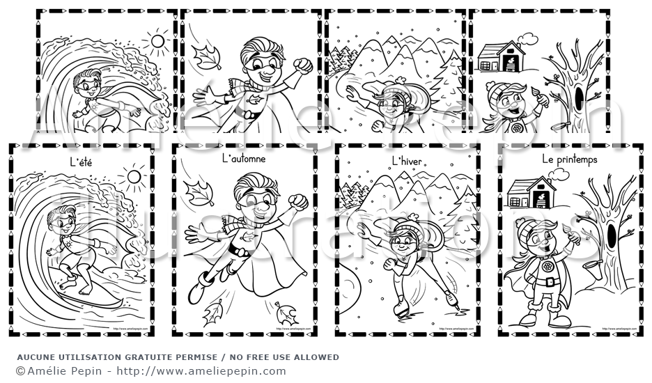 4 dessins à colorier - Saisons et super-héros