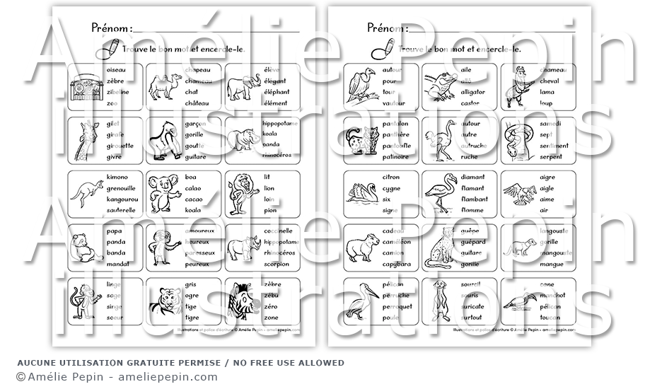 L'élève encercle le mot qui correspond à chaque image. Plusieurs mots se ressemblent, il devra lire les choix de réponse attentivement!