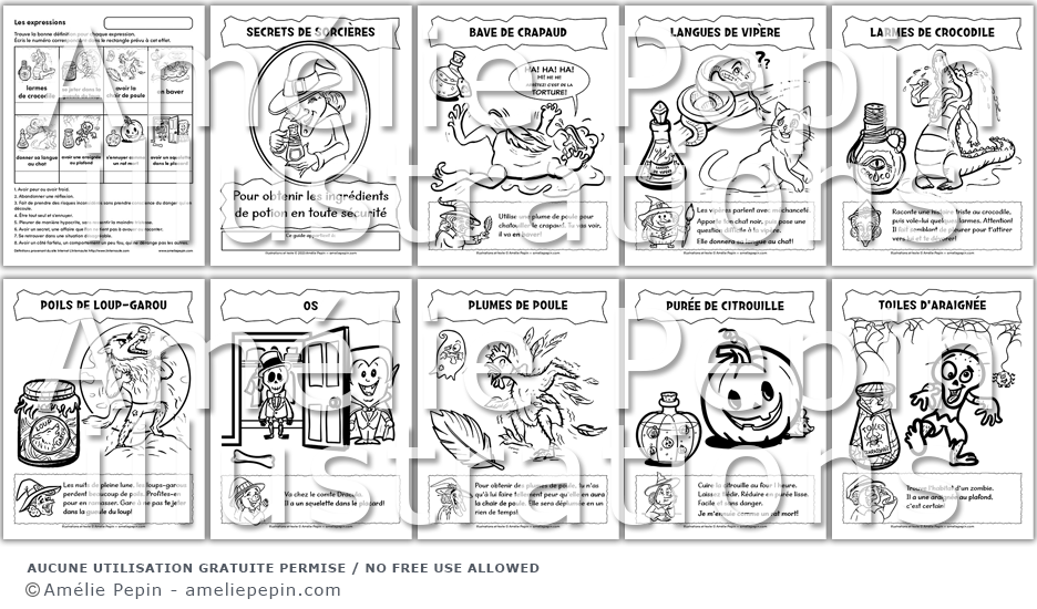 Dans ce livret à colorier, les sorcières dévoilent leurs secrets pour obtenir les ingrédients de potion en toute sécurité.