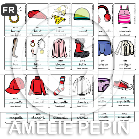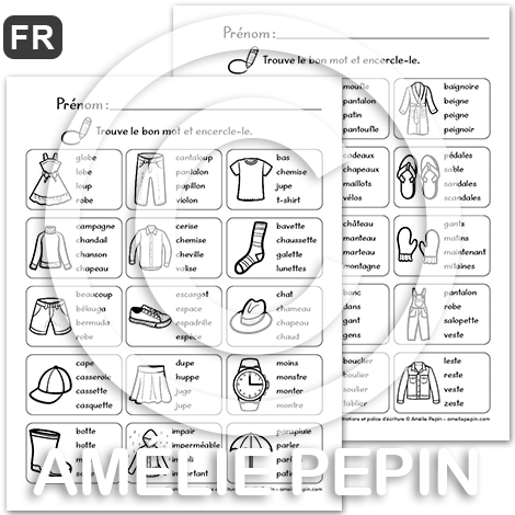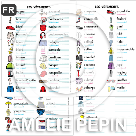 Vêtements - Liste de 75 mots illustrés (script et cursif)