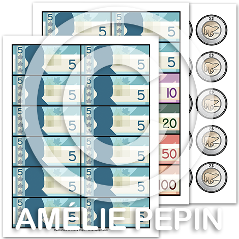 Feuilles de billets et de pièces de monnaie (argent canadien)