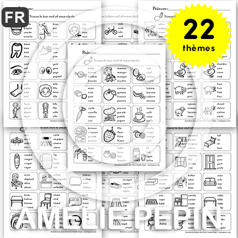 Français AlphabetCartes de motsÉcritureGrammaireImagiersJeux de motsLectureListes de motsMots-étiquettesPhonétique