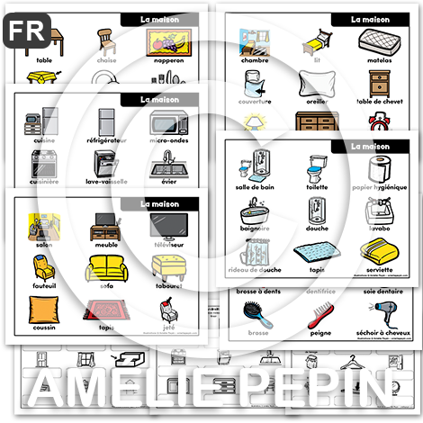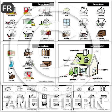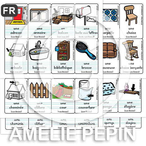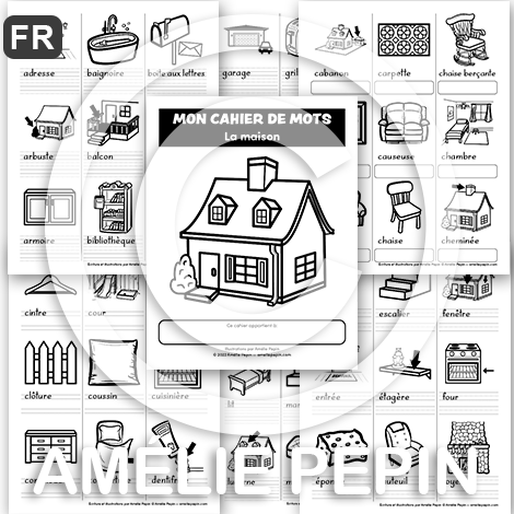 La maison - Liste de 103 mots illustrés (script et cursif)