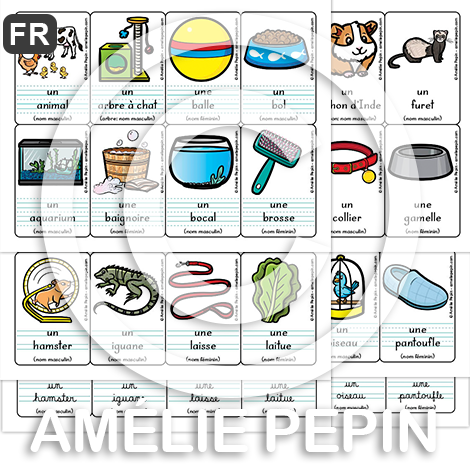 Animaux domestiques - 42 cartes de mots (script et cursif)