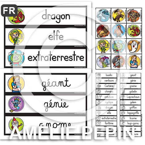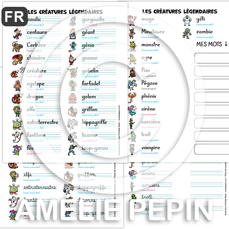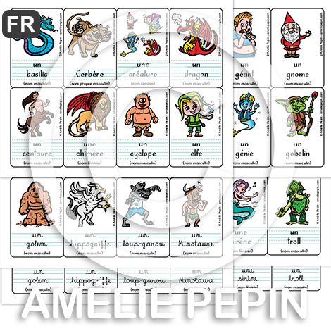Créatures légendaires - 36 cartes de mots (script et cursif)