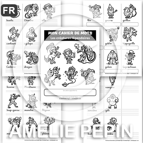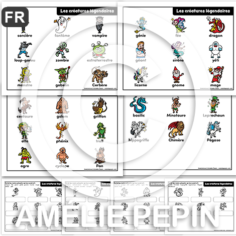 Créatures légendaires - 36 mots illustrés - Script et cursif