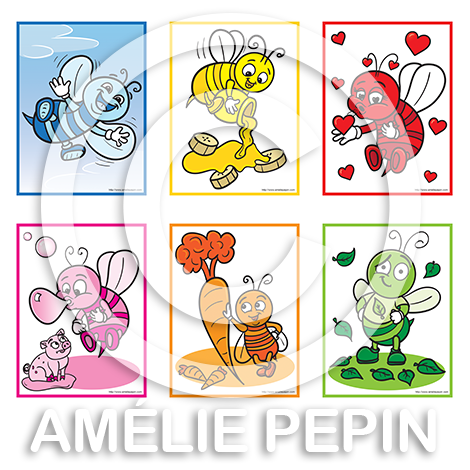 8 affiches d'abeille+couleurs écrites