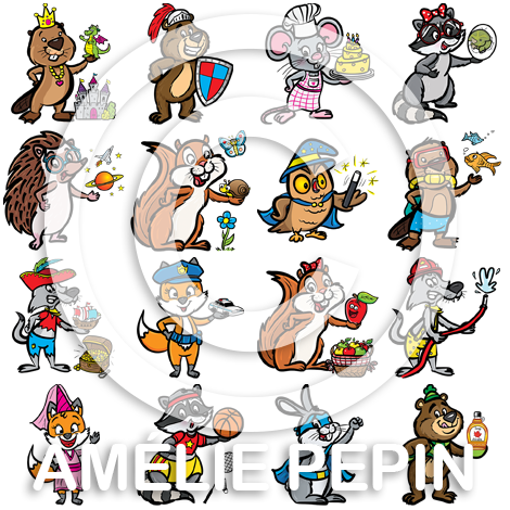 Abeille Castor Chat Coccinelle Dragon Écureuil Enfants Grenouille Hérisson Hibou Inséparable Koala Lama Lapin Lion Loup Monstre Ours Panda Papillon Paresseux Poisson Raton laveur Renard Singe Souris Superhéros