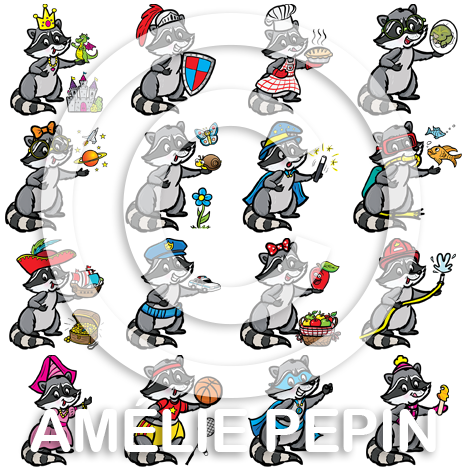 Ratons laveurs - Thèmes variés - 60 images Clip Art