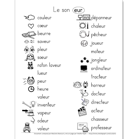 Le son EU - Liste de 72 mots illustrés