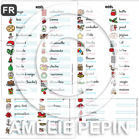 Noël - Liste de 68 mots illustrés (script et cursif)