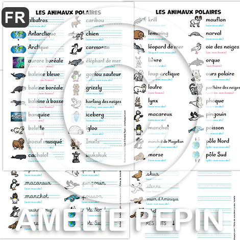 Animaux polaires - Liste de 51 mots illustrés (script et cursif)