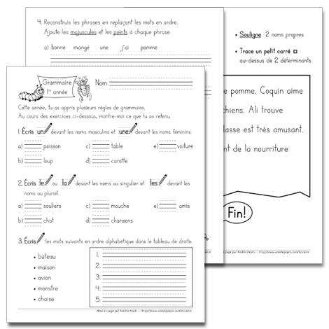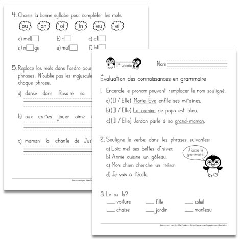 Évaluation de grammaire, 1re année