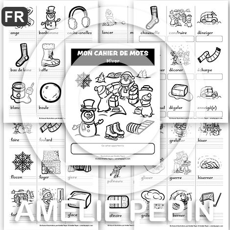 L'hiver - Liste de 66 mots illustrés (script et cursif)