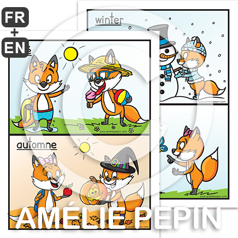 Les mois et les saisons - 18 mots illustrés - Script et cursif