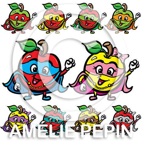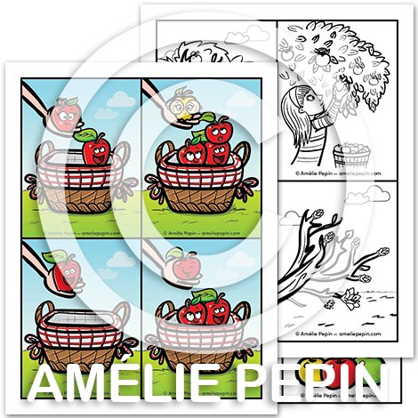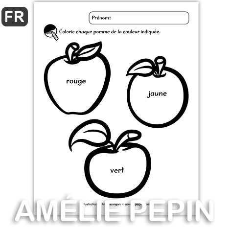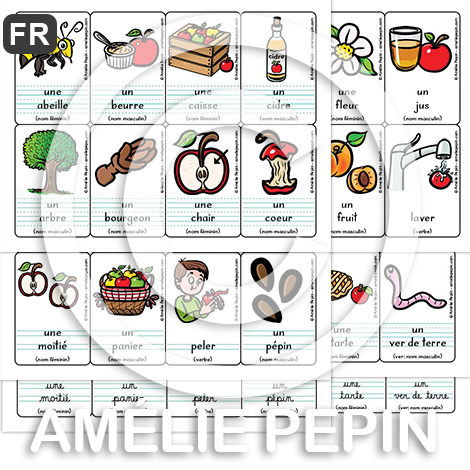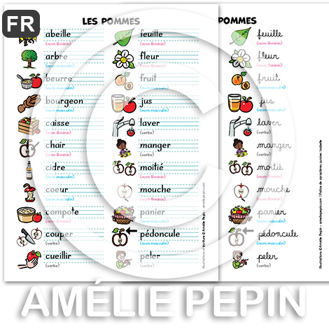 Les pommes - Liste de 32 mots illustrés (script et cursif)