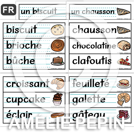 Pâtisseries et desserts - 27 grands mots illustrés - Script