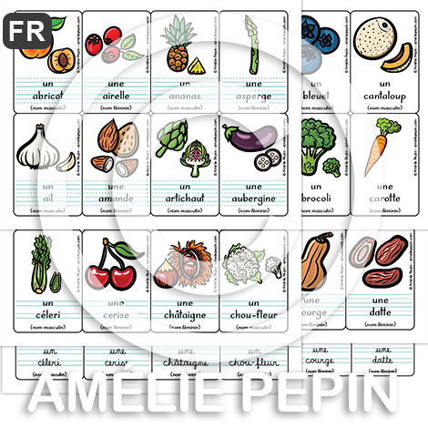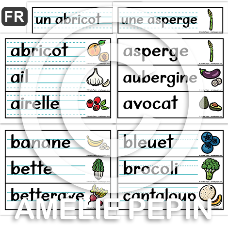 Fruits et légumes - 78 cartes de mots (script et cursif)