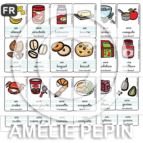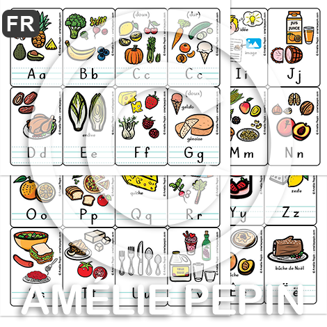 Aliments et mets - 80 cartes de mots (script et cursif)