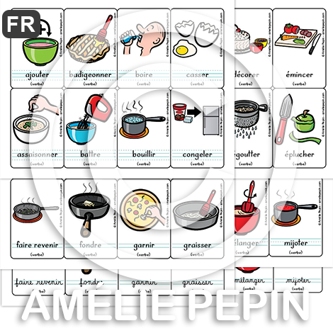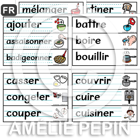 Verbes de cuisine - 54 cartes de mots (script et cursif)