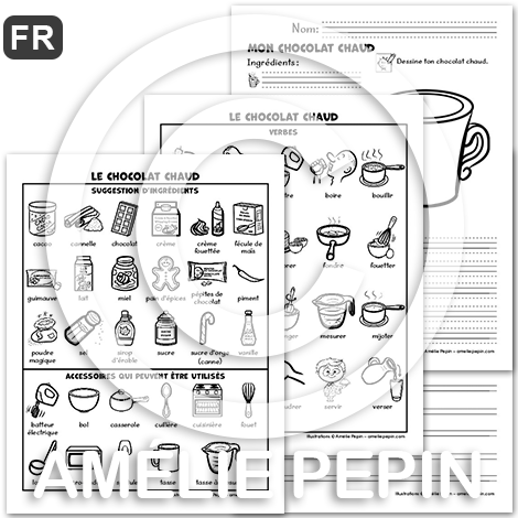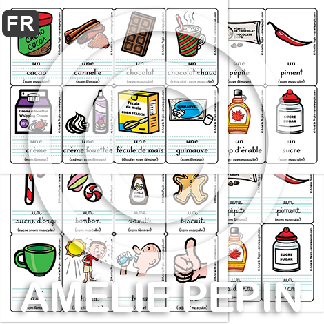 Chocolat chaud - 24 cartes de mots (script et cursif)