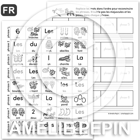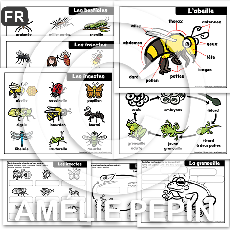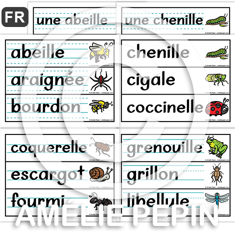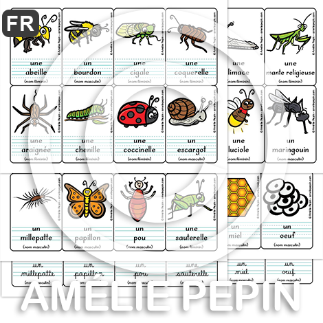Insectes et bestioles - 32 cartes de mots (script et cursif)