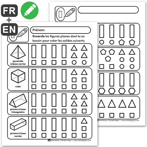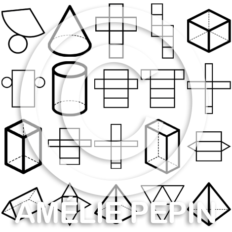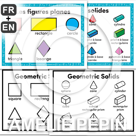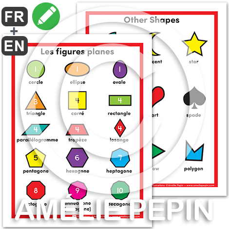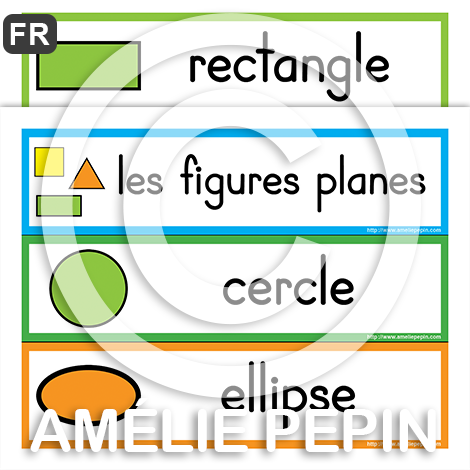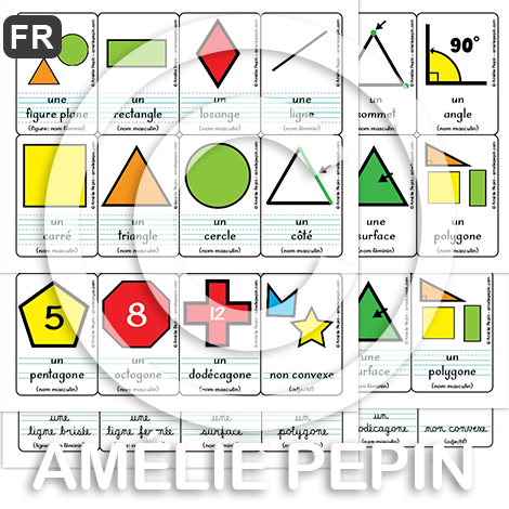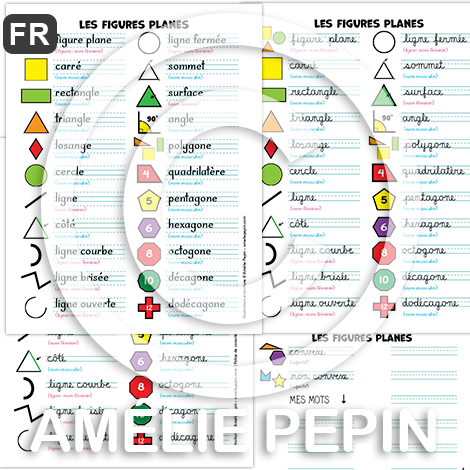 Les figures planes - Liste de 24 mots illustrés (script et cursif)