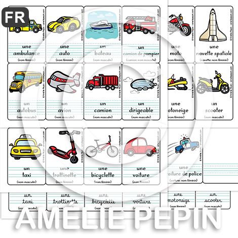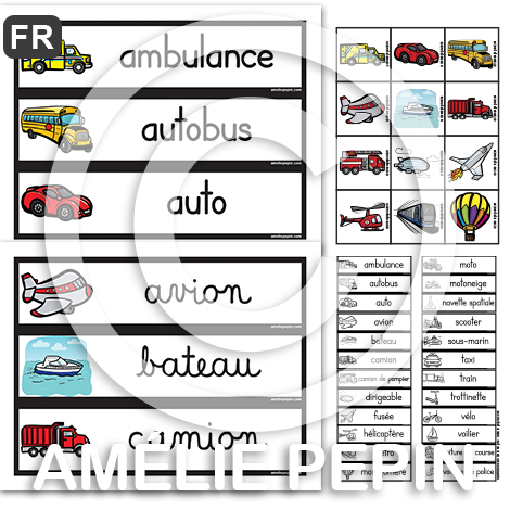 Véhicules - 26 cartes de mots (script et cursif)
