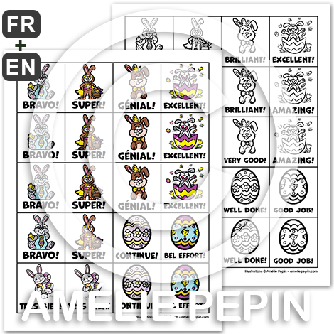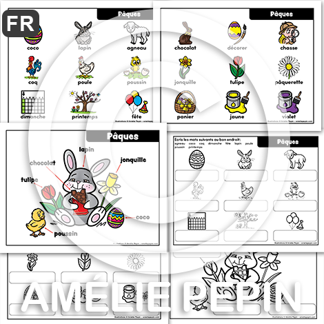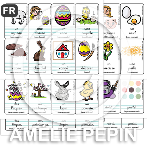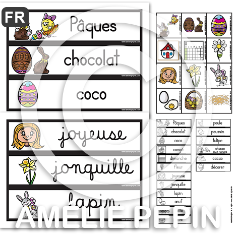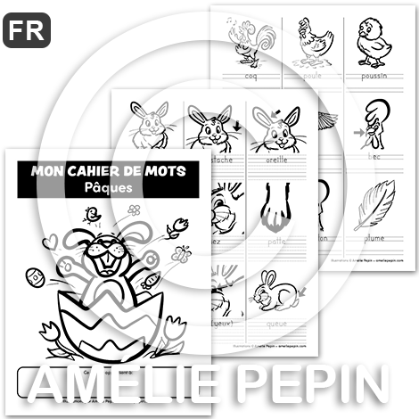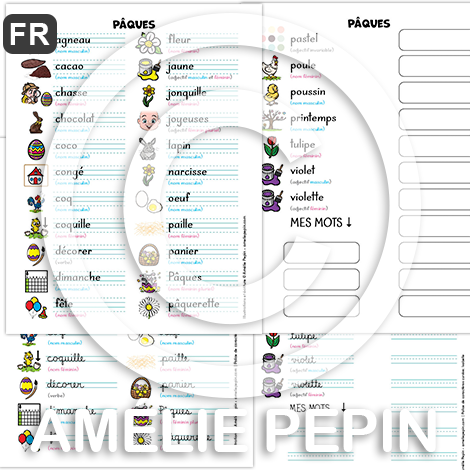 Pâques - Liste de 29 mots illustrés (script et cursif)