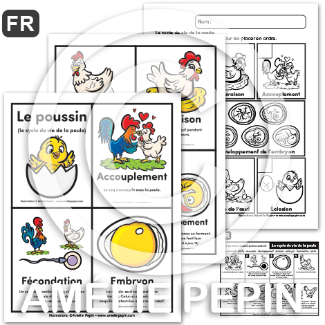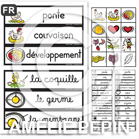 Le cycle de vie de la poule - 42 grands mots illustrés - Script